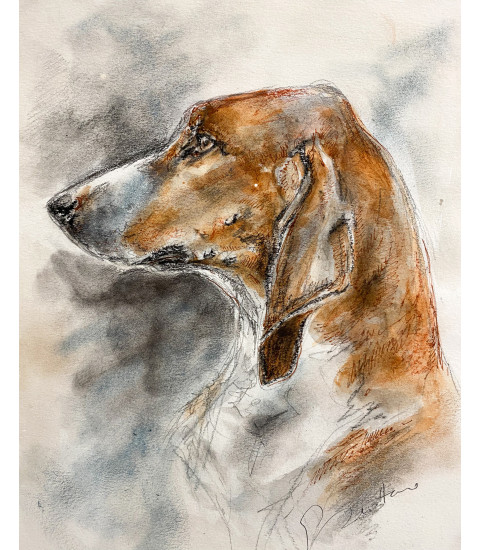 "Poitevin" est un dessin à l'aquarelle par l'Artiste peintre animalier Estelle Rebottaro.